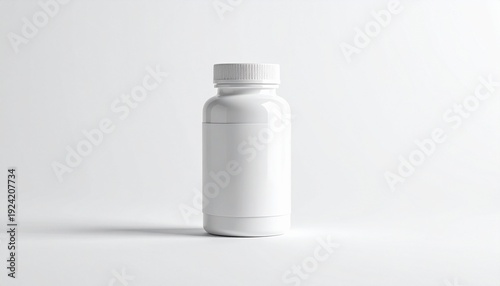 pill, bottle, capsule, supplement, medicine, pharmaceutical, health, nourishment, drug, container, plastic, white, cap, surface, background, minimal, sterile, clinical, generic, sample