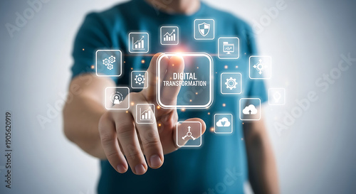 Unlocking Digital Transformation Person Interacting with Futuristic Interface for Business Growth and Innovation