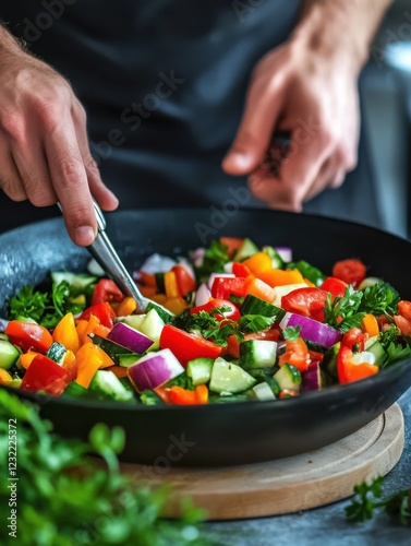 fresh, healthy, food, cooking, kitchen, salad, vegetable, meal, colourful, preparation, chef, homemade, chopping board, utensil, ingredient, organic, unrecognizable, man, hand, lifestyle, culinary, vegetarian, cookery, wellness, nourishment, epicure, receipe, seasonal, vibrant, chopped, mix, dish, toss, tasty, delicious, bowl, mixing, kitchen utensile, domestic, process