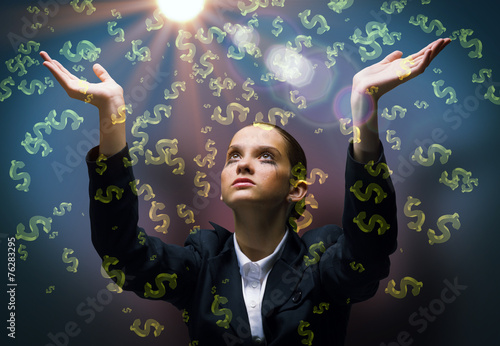 businesswoman, business, calm, concentrated, aureole, christian, corporate, believe, dollar, attention, daily, caucasian, count, exam, banking, boss, expression, confidence, career, currency, god, pray, income, head, finance, cry, female, faith, rain, executive, halo, nimbus, interest, exchange, success, saint, innocent, money, wealth, investment, spirituality, profit, woman, plan, strategy