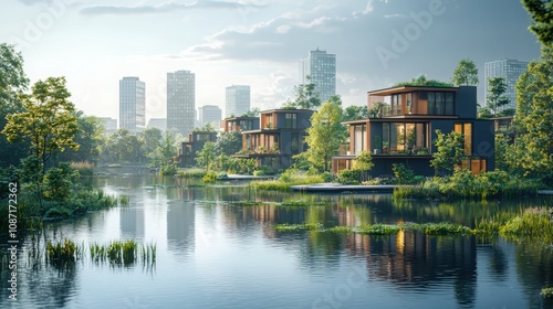 Urban renewal a panoramic view of a city in harmony with nature lakeside lifestyle modern architecture