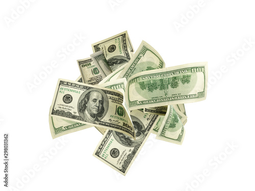 Us dollar. American money, falling cash. Flying hundred dollars isolated.