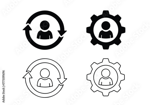 User cycle and gear icons for business and hr - Vector icon symbol for website - Icon vector - Blue icon vector - Line and glyph solid icon set