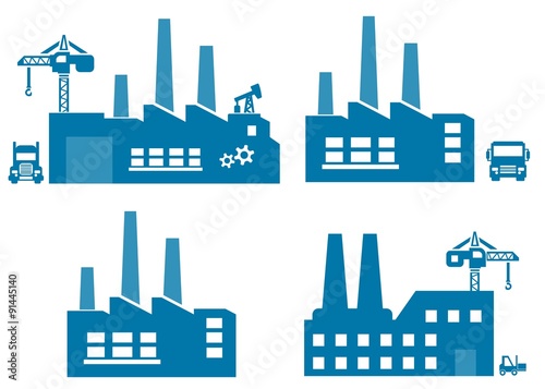 factory, industry, industrialist, production, shipping, truck, icon, symbol, factory, work, produce, manufactured, crane, blue