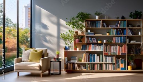 bookshelf, business, literature, organised, inviting, stylish, design, arrangement, bin, label, quote, artwork, material, lighting, rotate, ladder, corkboard, notepad, award, aesthetic, reference, chair, development, globe, mag, hierarchy, box, welcoming, digital, expansion, photograph, motivation, creativity, reading