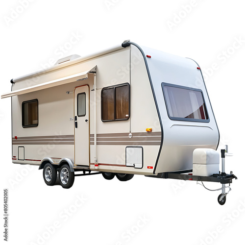 Vacation trip with Caravan Car on road. Camper and Summer drive on highway. Holiday journey