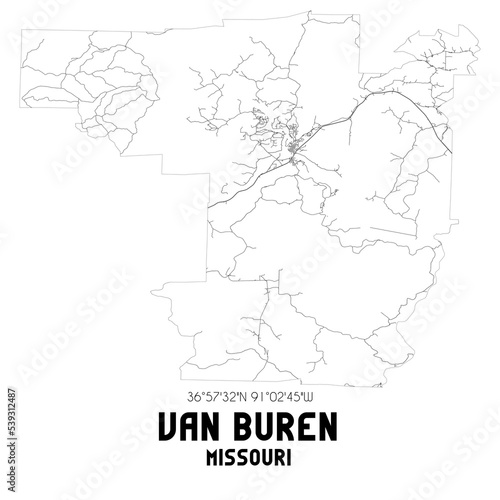 Van Buren Missouri. US street map with black and white lines.
