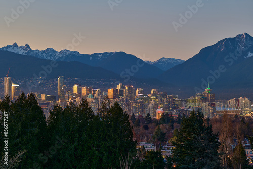 Vancouver Skyline at dusk as seen from Queen Elizabeth Park