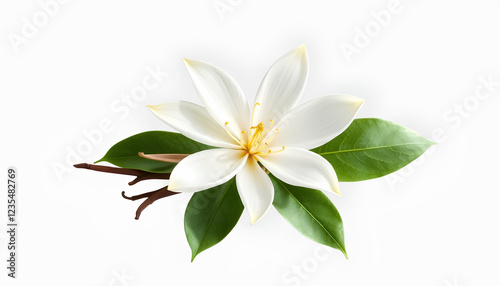 vanilla flower with pods and leaves isolated on transparent background Generative Ai. beautiful in white 2