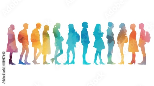 Varied silhouettes of individuals in a line, showcasing diversity and inclusion