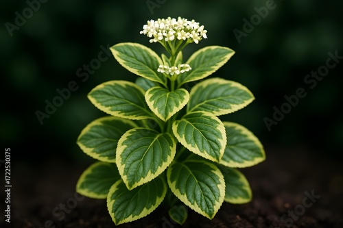 Variegated Plant with Green and Yellow Leaves in a Garden