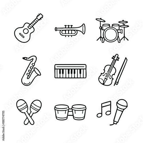 music, instrument, guitar, trumpet, drum, saxophone, piano, fiddle, microphone, note, melody, sound, audio, illustration, art, design, creative, entertainment, performance, live, concert, jazz, rock, pop, classical, harmony, rythm, beat, tune, song, vocal, acoustic, style, vector