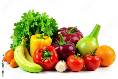 Variety of organic fruits & vegetables isolated, ingredients, food, fresh