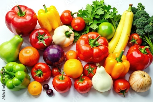 Variety of organic fruits & vegetables isolated on white, fruits, natural