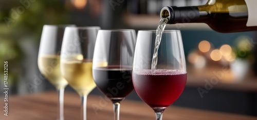 Variety of wine glasses being filled with red and white wine