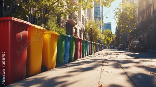 Various colorful recycling bins.