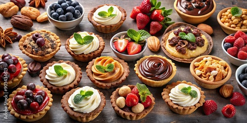 Various delicious fillings for pastries, including cream, fruit, chocolate, and nuts, fillings, pastries, cream, fruit