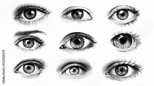 Various of eye hand draw black and white