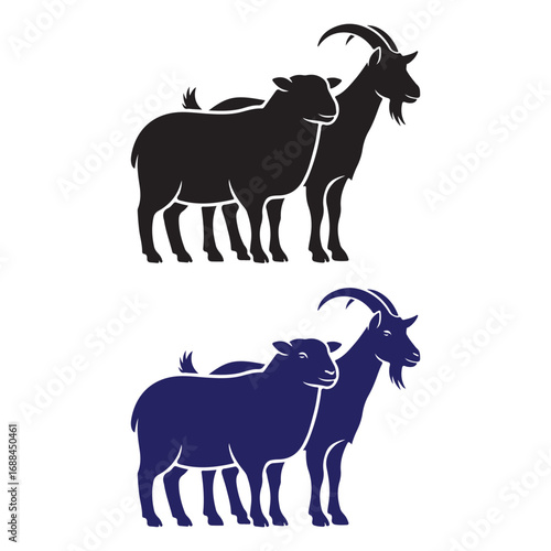 Vector art of black and blue silhouette of a sheep and a goat