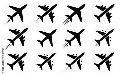 Vector art of collection of airplane silhouettes, showcasing various aviation transport and flight designs for diverse travel applications