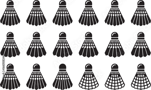 Vector art of collection of badminton shuttlecock illustrations, showcasing various feather arrangements and design variations for sports themes