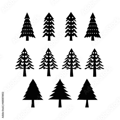 tree, christmas, pine, fir, silhouette, winter, evergreen, forest, holiday, symbol, nature, spruce, season, plant, conifer, design, wood, signs, graphic, element, shape, black, abies, flora, landscape, snow, tree branch, celebration, decoration, december, new, year, ornament, card, cold, drawing, clip art, style, art, outline, christmas tree, botany, vector, christmas, set, illustration, pattern, christmas tree