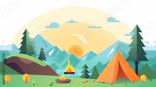 travel, forest, vector, tent, illustration, adventure, camp, hiking, nature, summer, tour tourism, vacation, mountain, campfire, tree, design, recreation, trip, activity, background, collection, set, wild, graphic, signs, icon, picnic, isolated, explore, fire, equipment, camping, scout, element, holiday, concept, cartoon, balefire, backpack, label, flat, vintage, park, landscape, logotype, journey, banner, river