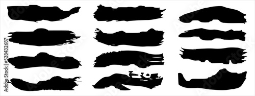 Vector collection of artistic grungy black paint hand made creative brush stroke set isolated on banner background. A group of abstract grunge sketches for design education or graphic art decoration