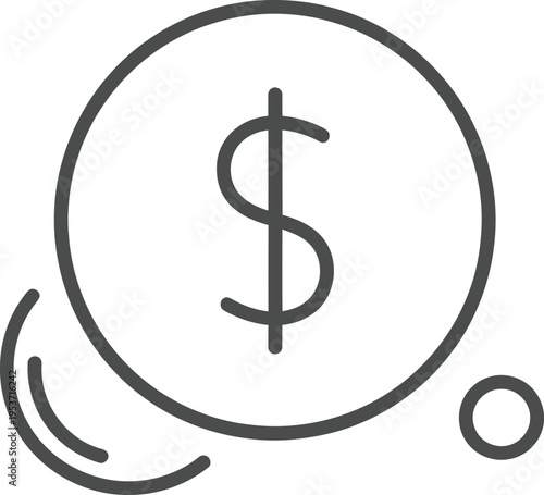 dollar, coin, icon, vector, money, currency, finance, symbol, signs, payment, cash, illustration, graphic, design, element, web, digital, minimal, line, grey, white background