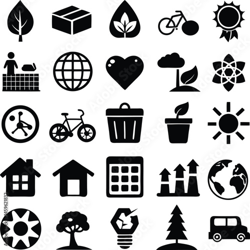 ecology, nature, environment, vector, icon, set, black, silhouette, design, tree, recycling, hand, eco, green, symbol, earth, organic, sustainable, environmental, leaf, growth, plant, graphic, abstract, illustration, emblem, care, conservation, isolated, save, clean, planet, protection, natural, element, shape, minimal, modern, line, resource, future, zero, waste, germinating, forest, human, life, garden