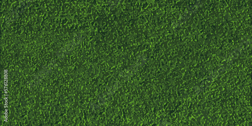 Vector green grass field background. Golf lawn texture, top view. Soccer turf pattern. Green garden horizontal banner. Detailed grassy ground