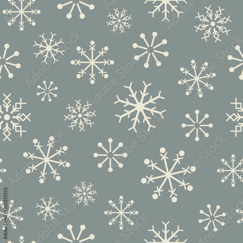 Vector grey white snowflakes seamless pattern Christmas