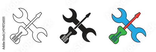 Vector icon set of screwdriver and wrench. Flat illustration of screwdriver and wrench.