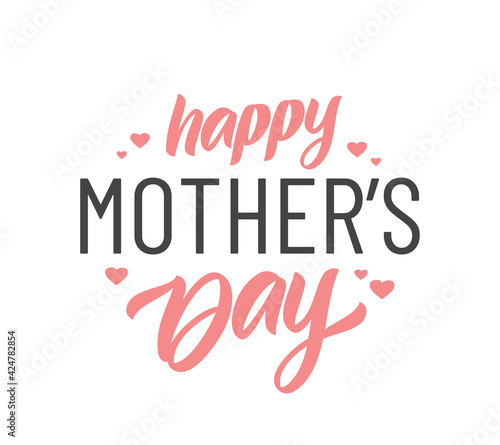 Vector illustration: Calligraphic Lettering composition of Happy Mother's Day with pink hearts on white background