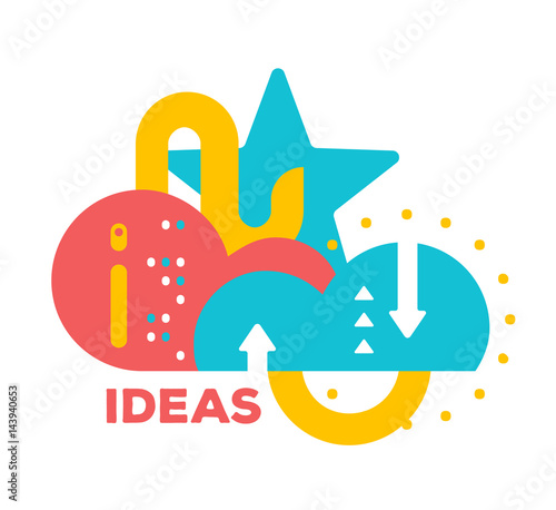 Vector illustration of bright creative abstraction on white background with word ideas. Business colorful abstract concept.