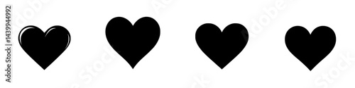 Vector illustration showcasing a collection of four heart icons in various styles on a plain background for design applications