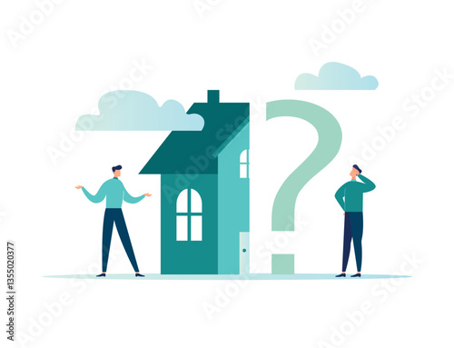 Vector illustration, the concept of a real estate business with houses, the growing real estate market, the increase in the value of houses and square meters, the purchase of real estate