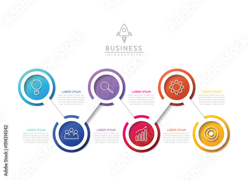 Vector infographic business presentation template with circular interconnection with 6 options.