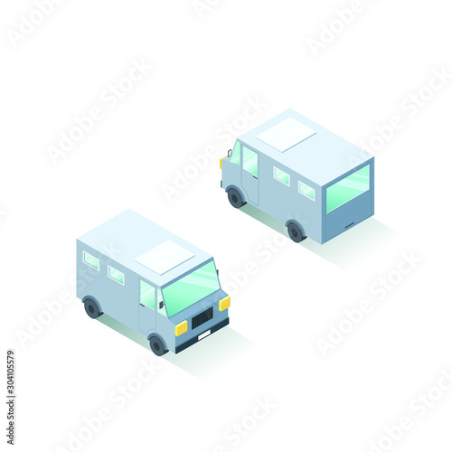 Vector isometric minivan cartoon illustration, car in color