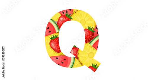 Vector letter q fruit design with strawberry watermelon and pineapple summer alphabet for kids learning concept