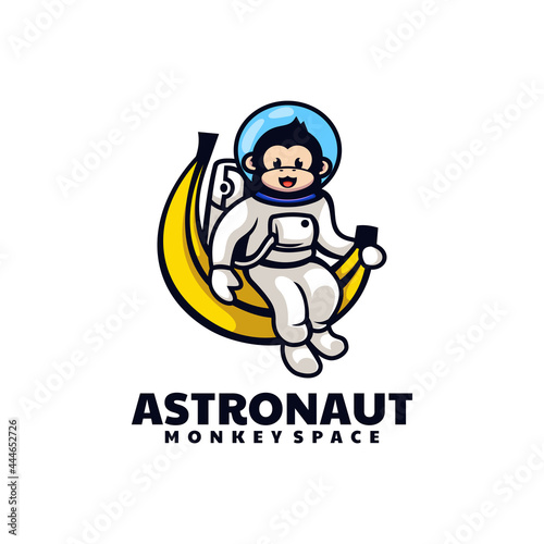 Vector Logo Illustration Monkey Astronaut Mascot Cartoon Style.