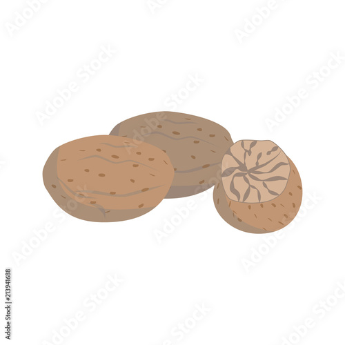 Vector nutmeg illustration isolated in cartoon style. Herbs and Species Series