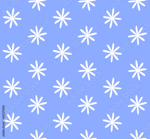 Vector seamless pattern of white hand drawn doodle sketch flower silhouette isolated on blue background
