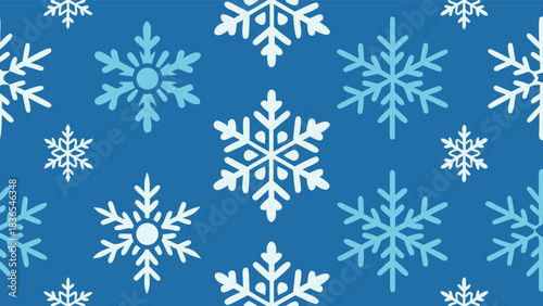 Vector seamless pattern with snowflakes on blue.
