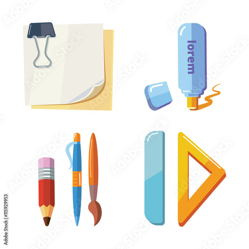 ruler, triangle, crayons, handle, brush, marker, felt-tip pen, sticker, stationery, school, element, set, background, vector, business, design, icon, office, cartoon, art, paper, pen, flat, white, isolated, tool, signs, graphic, drawing, illustration, collection, colours, eraser, tip, ball, mechanical, plastic, simple, coloured, equipment, ink, object, metallic, blue, gel, wooden, isolate