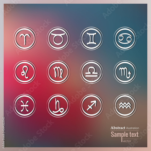 Vector set of zodiac sign icons in a round frame.