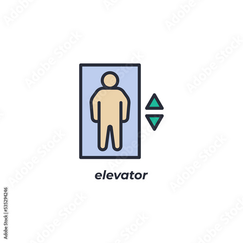 Vector sign elevator symbol is isolated on a white background. icon color editable.