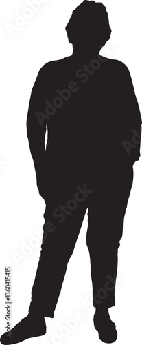 woman, senior, standing, front, view, vector, silhouette, illustration, icon, signs, drawing, transparent, background, white, black, graphic, simple, full, length, casual clothes, portrait, grandmother, mature, old, older, female, isolated, short hair, person, adult, elderly, people, 1, pant, posing