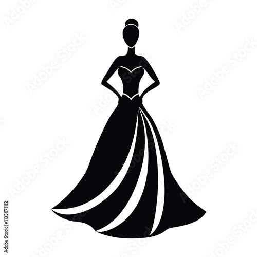 dress, bride, wedding, woman, fashion, beauty, gown, vector, people, illustration, silhouette, model, lady, elegance, marriage, bridal, clothes, long, princess, married, dance, clothing, celebration, person, bridal gown