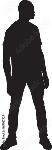 silhouette, man, turned, turn, isolated, full, length, casual clothes, portrait, white background, stare, male, face, view, shoe, person, african, confident, adult, style, people, guy, fashion, racked, posing, trendy, cool, man, 1, single, vector, illustration, icon, signs, drawing, transparent, black, graphic, simple, black-and-white